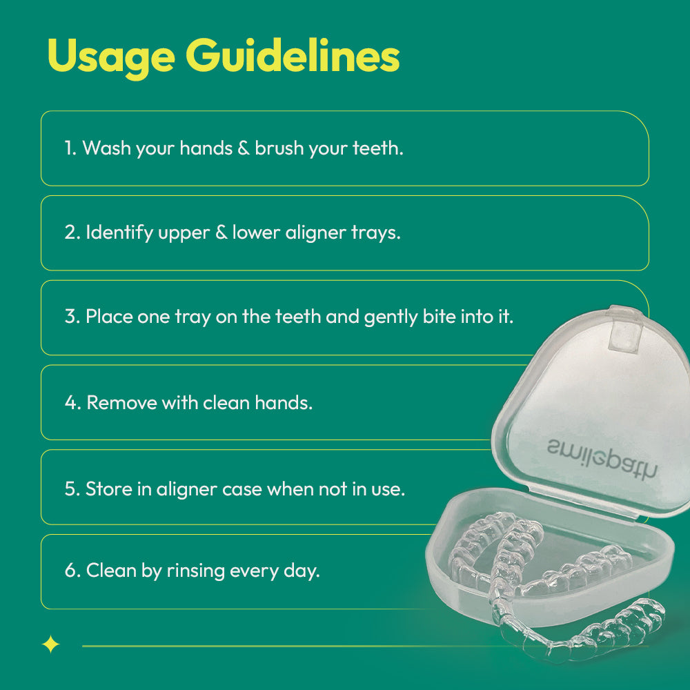 Follow your plan, wear aligners 22 hours a day, and maintain results with retainers.